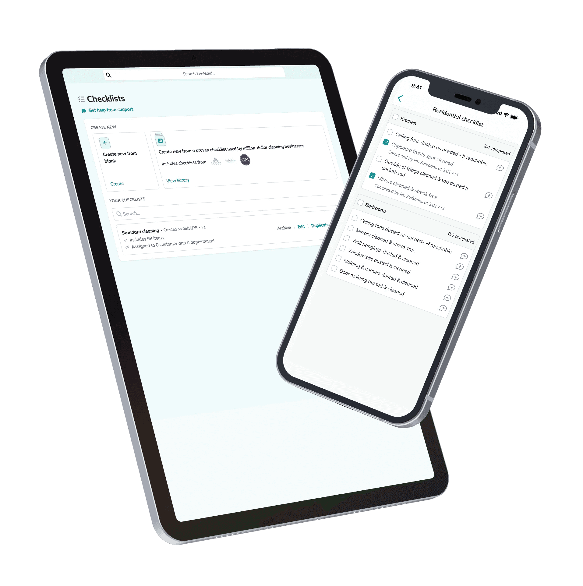 Crea listas de verificación digitales para negocios de limpieza que coloquen tus estándares donde pertenecen: dentro de la aplicación ZenMaid que tu equipo ya utiliza.