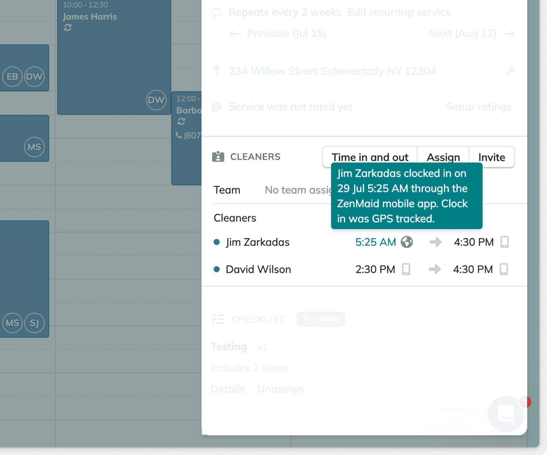 ZenMaid’s GPS time tracking shows exactly when and where your cleaner clocked in and out. No more guesswork.