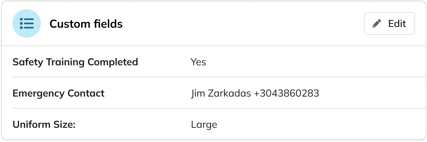 Track emergency contacts, pay rates, hire dates, birthdays, and more. Everything’s in one place instead of buried in a text thread.