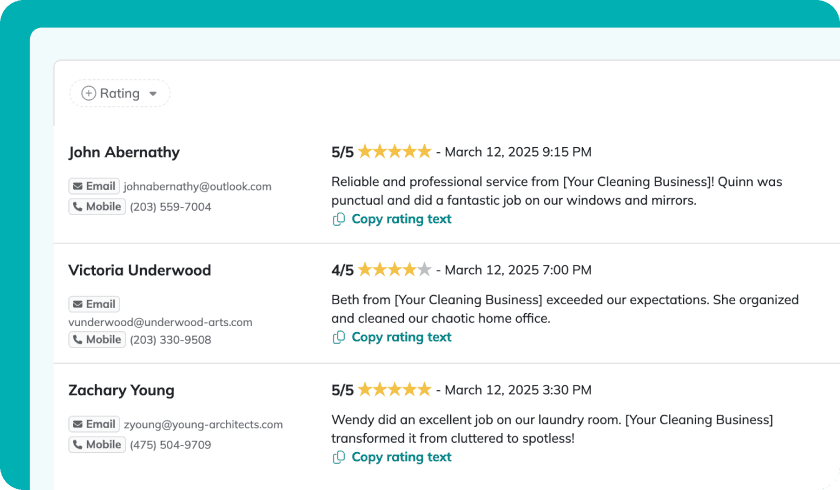 El CRM de ZenMaid para empresas de limpieza simplifica la gestión del equipo y la programación de clientes, haciendo que sus operaciones sean fluidas. Aproveche el poder de la automatización para ahorrar tiempo y centrarse en lo que realmente importa — expandir su negocio de limpieza con facilidad.